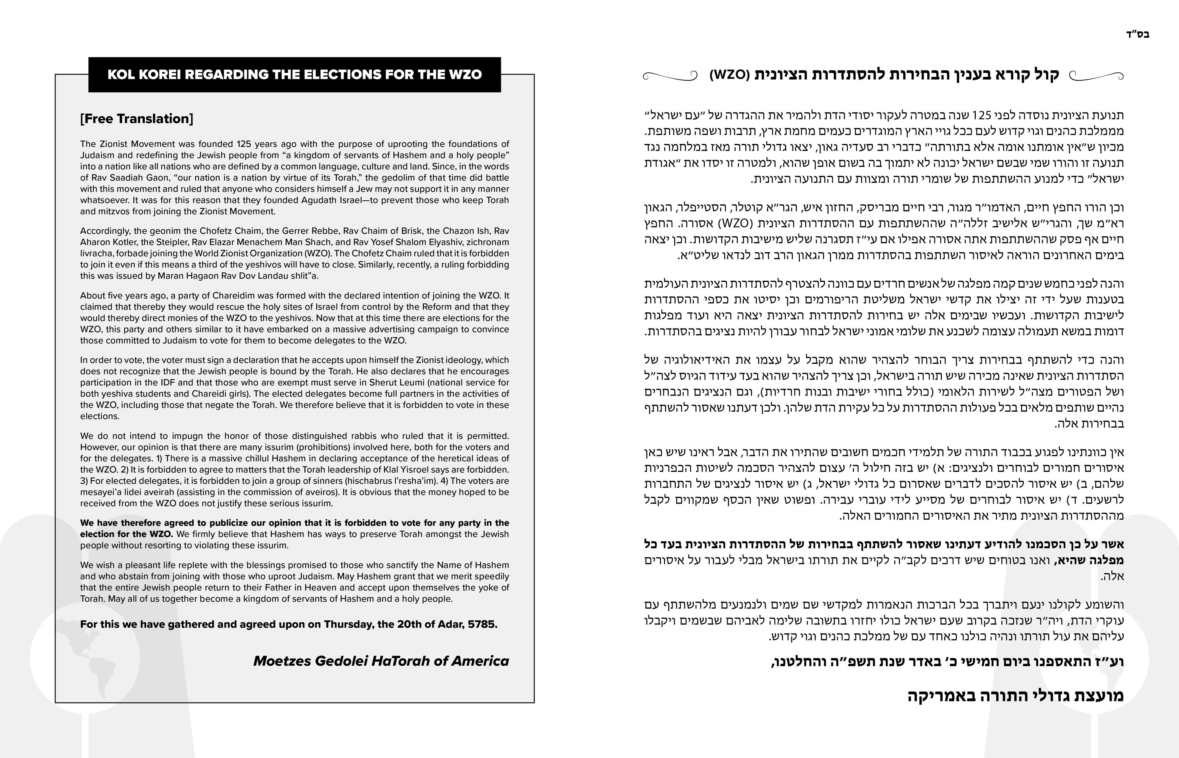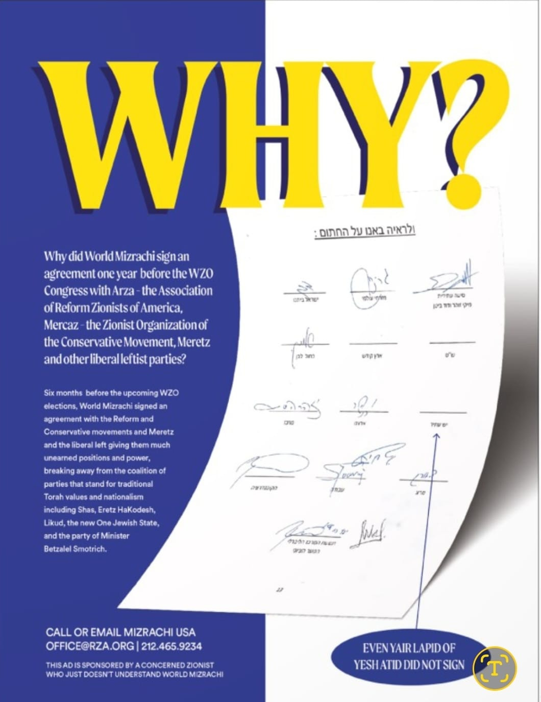 More interesting WZO news: World Mizrachi signed an agreement with Reform, according to R’ Pini Dunner. This has resulted in many MO and Yu refusing to vote for them.