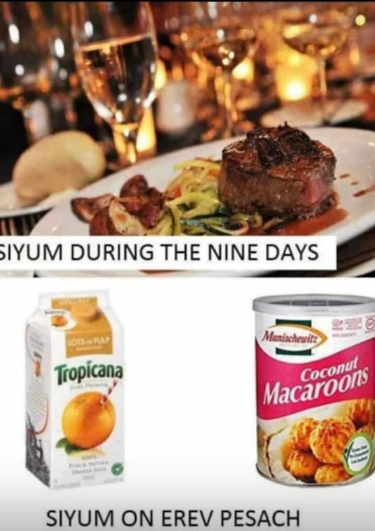 Here is his interesting perspective on siyumim during the nine days. Since I read the article to the end, I was able to enjoy some hearty steaks! L’chaim!